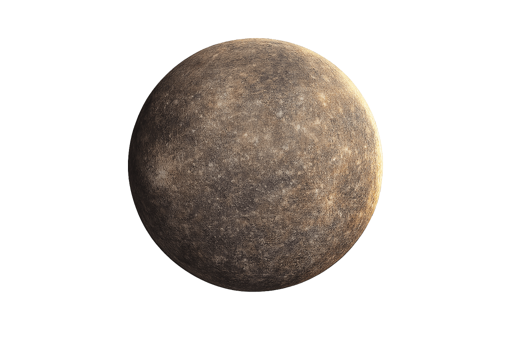 Merkur ist der sonnen nächste Planet, eine kleine, heisse Welt. Für Beobachter von der Erde entfernt er sich nur etwa 25° von der Sonne. Der Planet geht somit meist fast zeitgleich mit der Sonne auf und unter. Nur wenige Wochen im Jahr sind die Sichtverhältnisse ausreichend, um den Planeten für kurze Zeit noch in der Dämmerung als recht hellen Stern sichtbar werden zu lassen. Im Teleskop erscheint der Merkur dann als kleines mehr oder weniger halbmondförmiges Scheibchen. Nur mit moderner Elektronik lassen sich auf digitalen Bildern von der Erde aus ein paar grobe Details erkennen. Vor dem Raumfahrzeitalter wusste man eigentlich nur, dass er keine Atmosphäre besitzt und nicht einmal halb so gross ist wie die Erde.